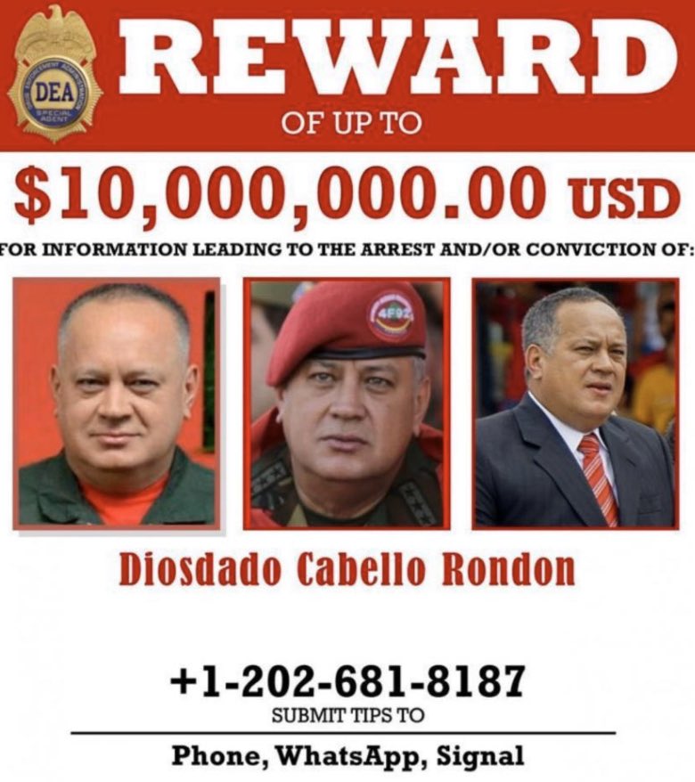 La administración de Donald Trump ofrece 10 millones de dólares por información que también permita vincular y detener a los mencionados por el tráfico de drogas y terrorismo.