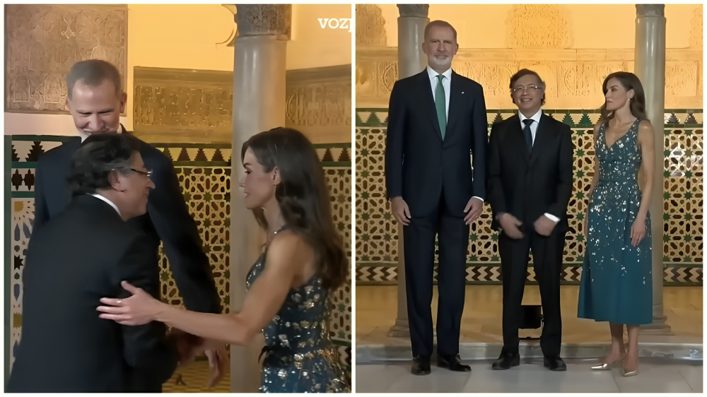 Petro fue recibido por los monarcas en el ingreso a la cena organizada para los presidentes y líderes internacionales. Durante el saludo, el presidente colombiano le dio la mano al rey Felipe VI, pero cuando llegó el turno de la reina Letizia, intentó acercarse para besarla en la mejilla, una acción fuera del protocolo real.