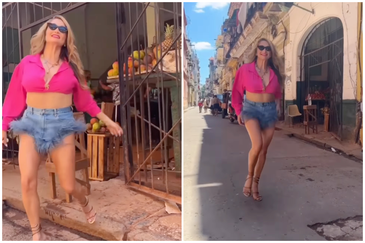 La joven fotógrafa compartió el video de la mujer “modelando” y ha revuelto las redes. Dávalos, de 38 años, buscó el mercado medianamente mejor abastecido para “salir de las yucas” a las calles llena de baches, las edificaciones cayéndose, y mostrarse feliz y espléndida.
