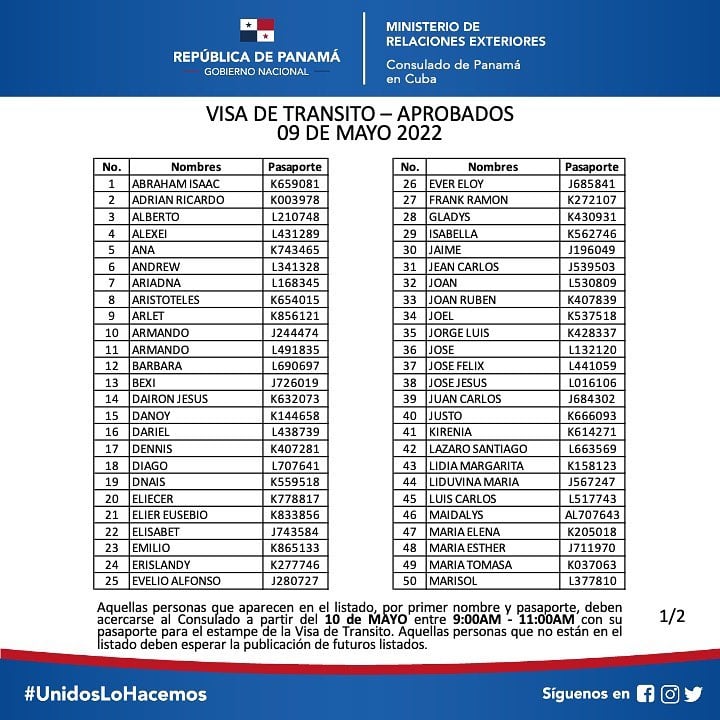 Como es habitual desde el inicio de la petición de visas de tránsito obligatorias para que los cubanos puedan viajar a Panamá, la Embajada de esa nación centroamericana en La Habana publicó en sus redes sociales las nuevas listas de los solicitantes aprobados para recibir el visado.
