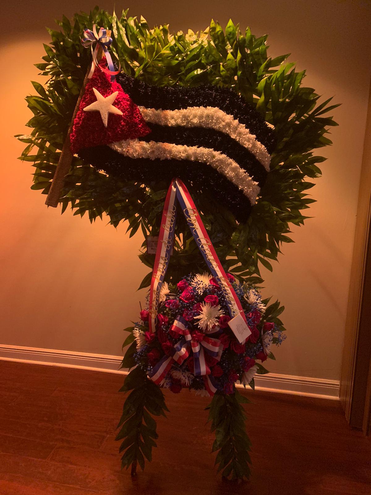 El féretro de la actriz fue bellamente engalanado y los conjuntos florales eran variados aunque destacaba uno realizado para semejar la bandera cubana esa a la que representó Fornés en cada uno de los escenarios internacionales en los que ofreció su arte.
