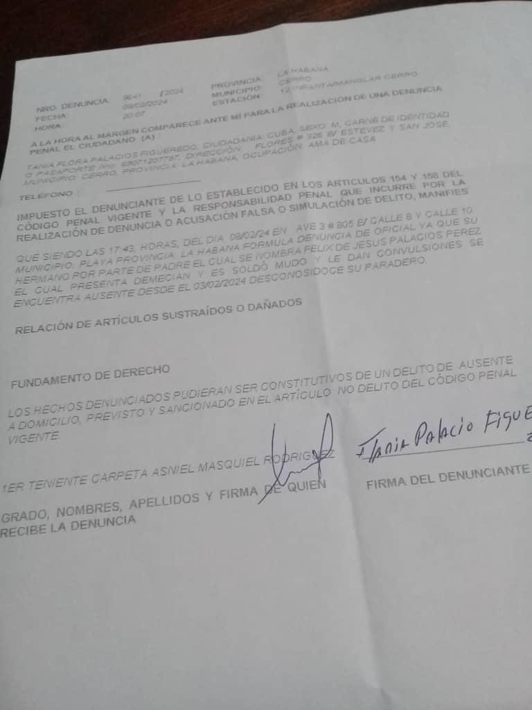 Según el relato de su hermana a la redacción de Periódico Cubano, el extraviado convulsionó el pasado viernes 2 de febrero y al siguiente día los vecinos, preocupados por esta situación, solicitaron ayuda a la Policía Nacional Revolucionaria (PNR).