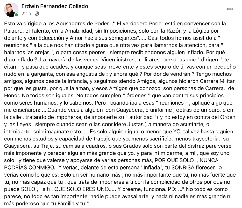 Erdwin Fernández envía un mensaje a los “abusadores de poder”
