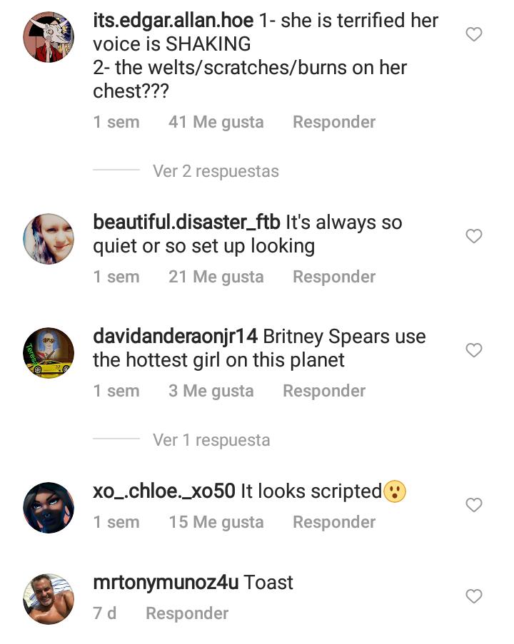 “La última vez que me presenté aquí y dije que no pasaba nada, me hizo sentir como si estuviera muerta, como si yo no importara y nunca me hubieran hecho nada (…) Ellos solo usan mi dinero para contratar a otra persona y mantener a mi papá a bordo. Señoría, si estoy aquí es porque estoy diciendo la verdad y quiero ser escuchada (…) Mi papá y cualquiera involucrado en el manejo de mi carrera jugaron un rol importante en castigarme cuando hablé, todos deberían estar en la cárcel”, sentenció Britney.