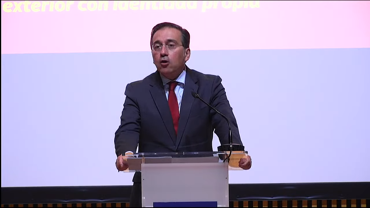 El canciller define la estrategia de la política exterior española para 2025-2028. (Captura de pantalla © Ministerio de Exteriores – YouTube)
