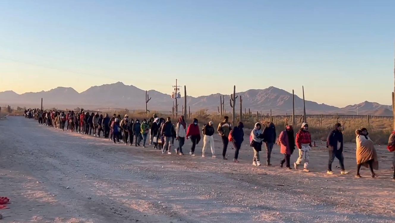 Happening now: The is my current view. I’m with a group of 800 migrants headed to the Rio Grande to cross illegally into Eagle Pass. pic.twitter.com/YHloMqJ8q3