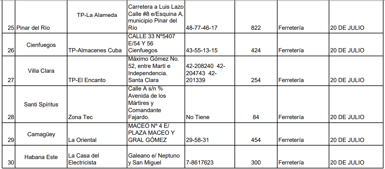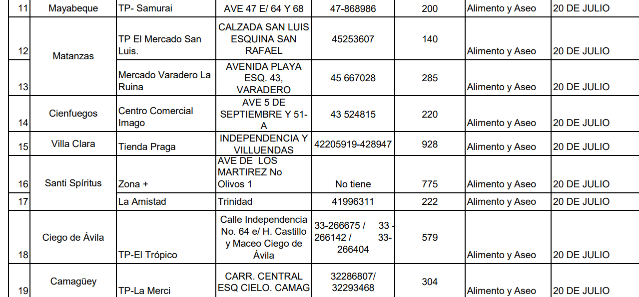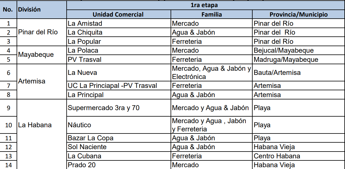 Esta red de tiendas incluye 72 establecimientos, tanto de la cadena Cimex como de TRD, ambas controladas por el complejo militar GAESA. Estos establecimientos están ubicados a lo largo de todo el país, aunque con mayor presencia en La Habana, donde existen 14 de ellos.