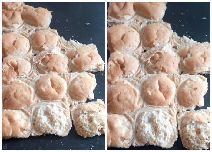 Julio César compartió en su perfil de Facebook las fotografías de lo que parecen más bien ser restos de pan, aplastados y con partes arrancadas como si hubieran quedado pegadas en algún contenedor o en la propia bandeja del horno.