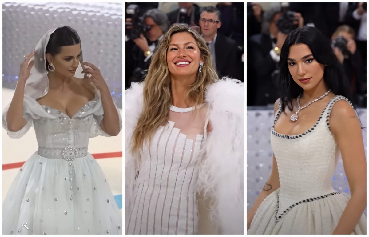Penélope Cruz apareció con un vestido de novia único por su capucha en forma de velo con pedrería. También brilló el vestido de alta costura de Chanel que lució Dua Lipa, con silueta encorsetada y tejido tweed.