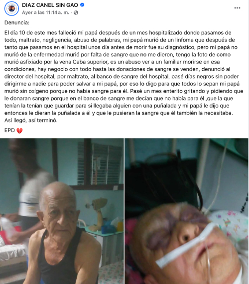 Una denuncia publicada este fin de semana en la página de Facebook Díaz Canel Sin Gao expuso el presunto caso de negligencia médica que habría provocado la muerte de un paciente en un hospital cubano.