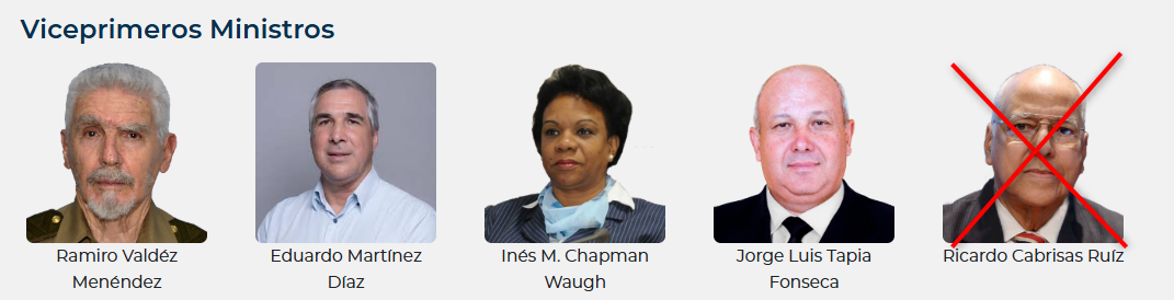Actualmente, hay cinco viceprimeros ministros, pero con la muerte de Cabrisas Ruiz queda una plaza vacante.