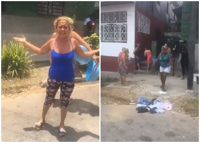 La cuenta de Facebook Cuba Paparazzi Hoy publicó un video de la manifestación donde se ve a las mujeres tirar ropas a la calle señalando que no pueden lavarla y además muestra tanto cubetas como garrafones vacíos.