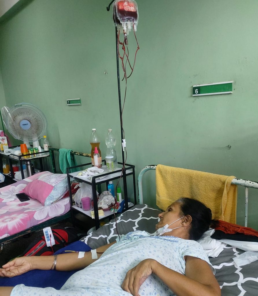 Según refiere Omarito, su madre ingresó a la institución hospitalaria el 14 de julio y fue “internada por una hemorragia intensa, provocada por un fibroma hepático con sangramientos”. Tras varias gestiones personales, logró conseguir cuatro donaciones del grupo O negativo, donante universal, pero la salud de la paciente está seriamente comprometida, por lo que esta cantidad no es suficiente.