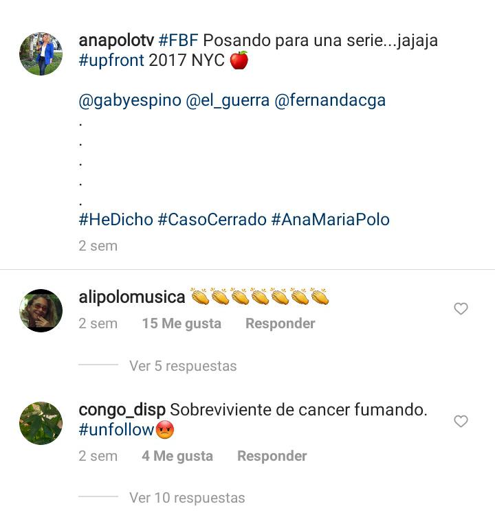 “Ay, pero muy sexy esa mirada”, “Que belleza de pose Anita, me encanta”, “Toda imagen y poses sensuales solo a la doctora Polo le quedan bien”, “¡Guapísimos, he dicho!”, “Sensual, provocadora, pero qué está mirando Ana María. Que cosa, pero igual te adoro”, y “Anita, que foto. Hermosa”, fueron algunos de los comentarios que dejaron los followers.