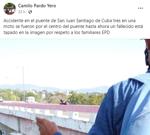 Un fatídico accidente ocurrido en el puente de San Juan, en Santiago de Cuba, provocó la muerte de una persona y dejó otra gravemente herida. El siniestro tuvo lugar en la tarde de ayer martes cuando tres personas se desplazaban en una motocicleta y cayeron al vacío desde la estructura.