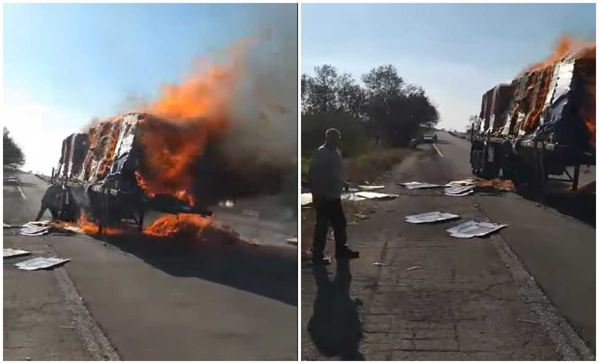 Un camión estatal supuestamente cargado de cajas de cartón se vio envuelto en llamas este pasado viernes en plena Autopista Nacional, a la altura del kilómetro 215, perteneciente a los límites entre las provincias de Cienfuegos y Villa Clara, y el fuego se salió de control ante la ausencia de herramientas y dispositivos para apagarlo.
