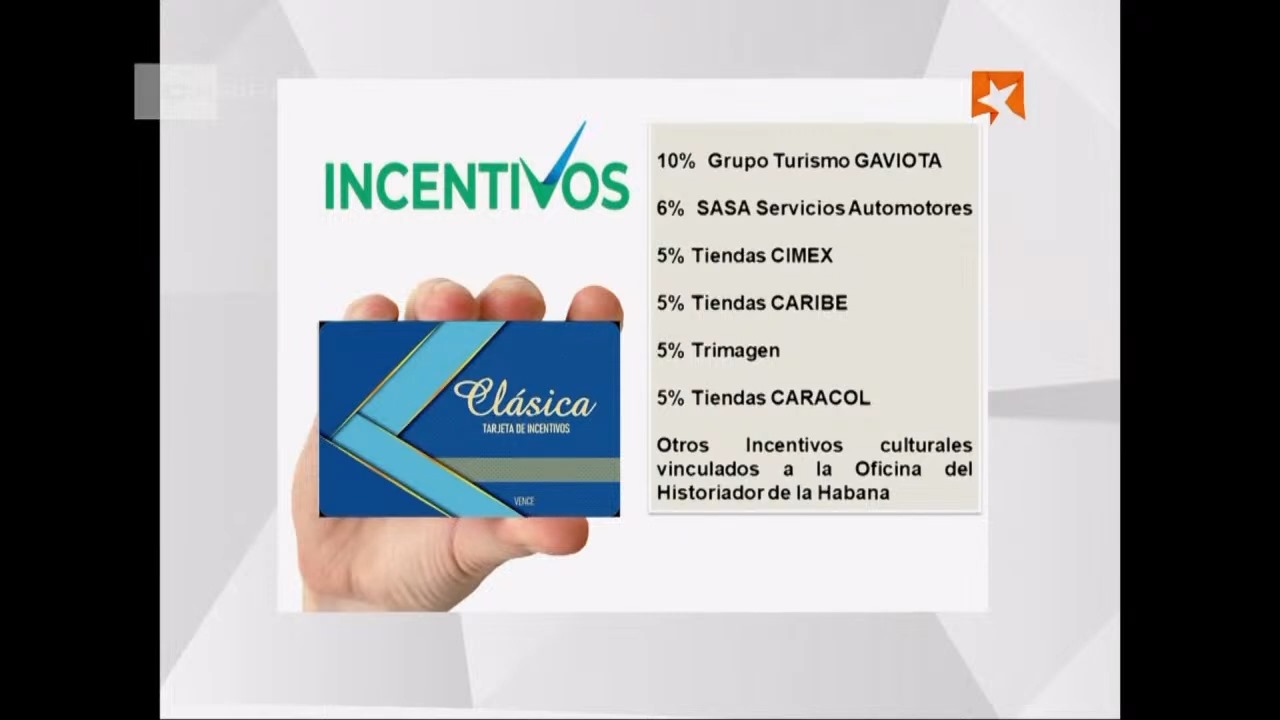 Según el vicepresidente primero de Cimex, las tarjetas Clásica ofrecen descuentos de hasta un 10% en comercios afiliados, como el Grupo Turismo Gaviota (10%), SASA Servicios Automotores (6%), Tiendas CIMEX (5%), Tiendas Caribe (5%), Trimagen (5%) y Tiendas Caracol (5%). También se incluyen incentivos culturales vinculados a la Oficina del Historiador de La Habana.