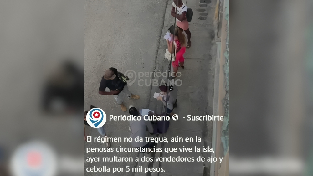 Un lector de Periódico Cubano compartió a nuestra redacción el momento en que dos agentes de la Policía Nacional Revolucionaria (PNR) procedían a la aplicación de una medida restrictiva contra dos vendedores de ajo y cebolla.