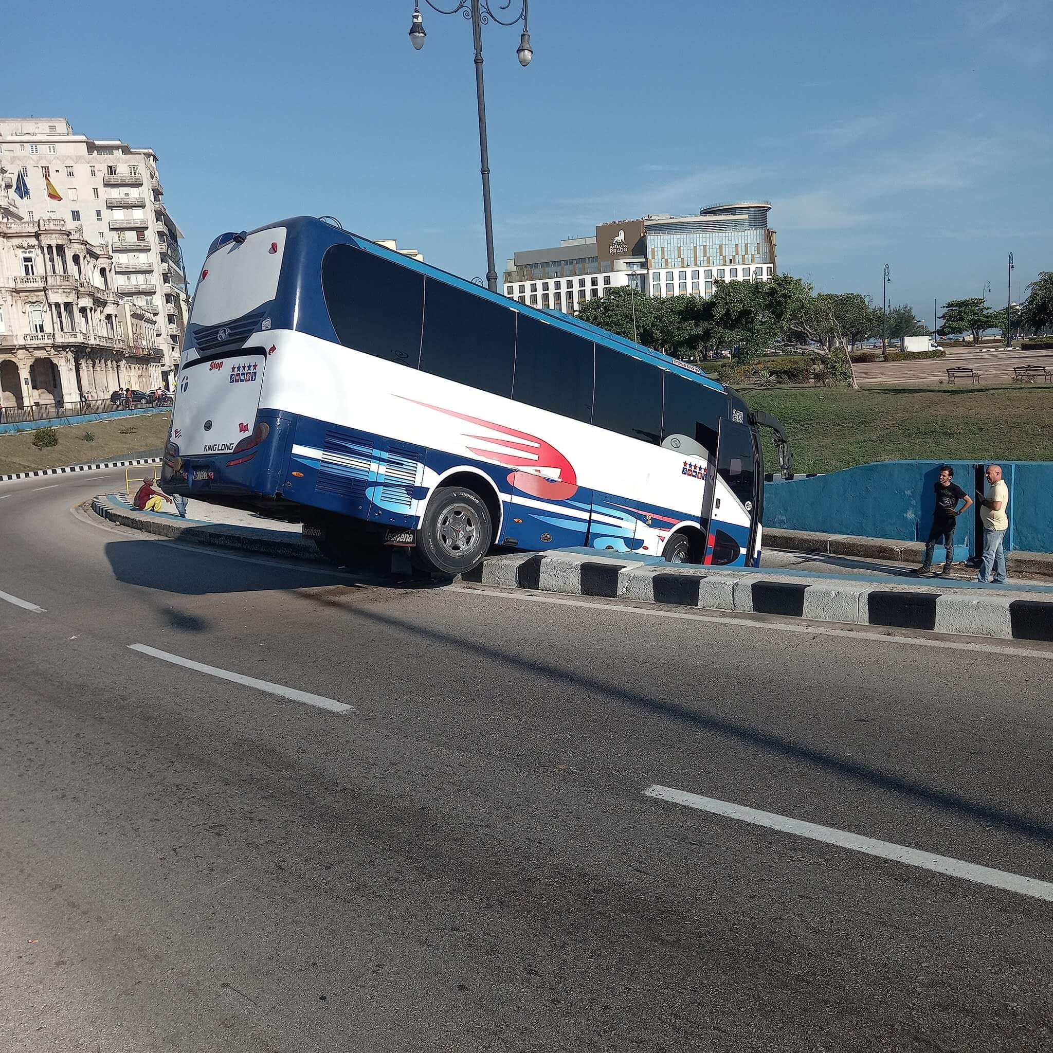 El insólito accidente fue reflejado por el corresponsal en Cuba de la cadena estadounidense CNN, Patrick Oppmann, quien publicó varias fotografías donde se aprecia cómo el ómnibus de la marca King Long cruzó una primera barda y luego colisionó contra una pared de mayor altura que no pudo rebasar.
