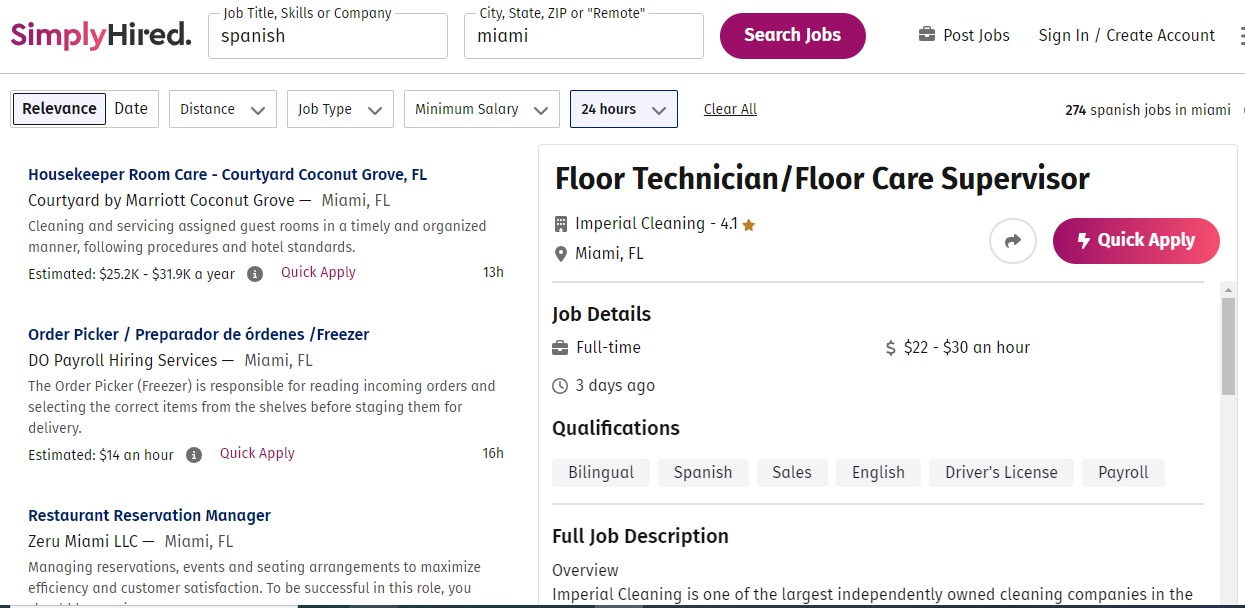 De acuerdo con la publicación de Imperial Cleaning en el portal web de clasificados de vacantes Simply Hired, la plaza de Gerente de Proyectos tiene un atractivo sueldo de entre 22 y 30 dólares por hora, y está dirigida a los residentes en Miami que estén buscando trabajo.