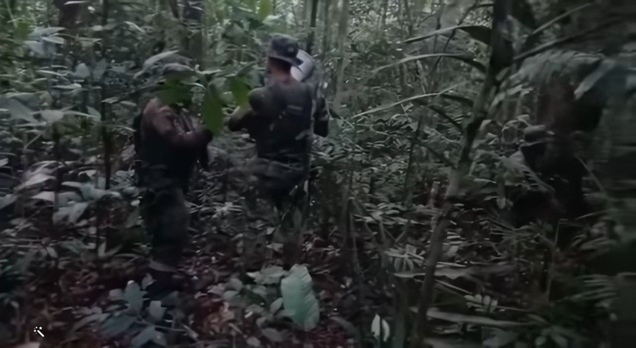 #AEstaHora comandos de la @FuerzaAereaCol sacan de la espesa selva a los 4 niños. El helicóptero 🚁 está a más de 60 mts de altura. Los árboles 🌳 son muy altos y la visibilidad es casi nula. Van al helipuerto habilitado en medio de la selva para esta operación.