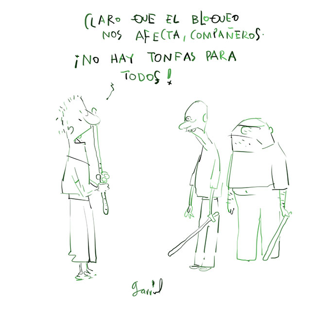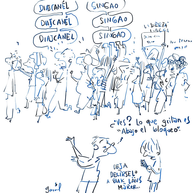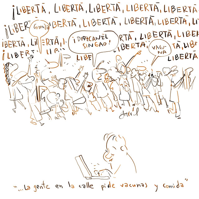 El artista cubano Gustavo Rodríguez, conocido como Garrincha, ha compartido en redes sociales decenas de caricaturas sobre las históricas manifestaciones de miles de cubanos contra la dictadura, así como la brutal represión desplegada por el gobierno y la manipulación de la prensa oficialista sobre los hechos.