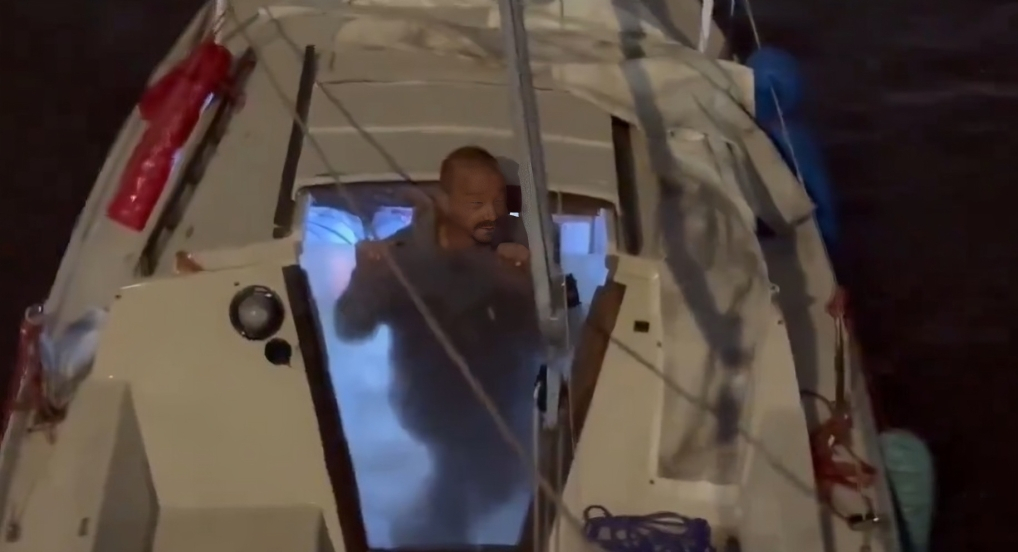 Antes de la parte más crítica del impacto, un reportero de News Nation le hizo una breve entrevista para saber si se encontraba listo para recibir al huracán. “Sé que todo el mundo está preocupado por mí. Todo el mundo quiere que baje del barco. Tengo un punto de anclaje seguro. Si sube la marea, salgo. Mientras el agua no entre en el barco, estaré bien. No es un tornado; no va a llegar a Kansas. No tengo tendencias suicidas”.