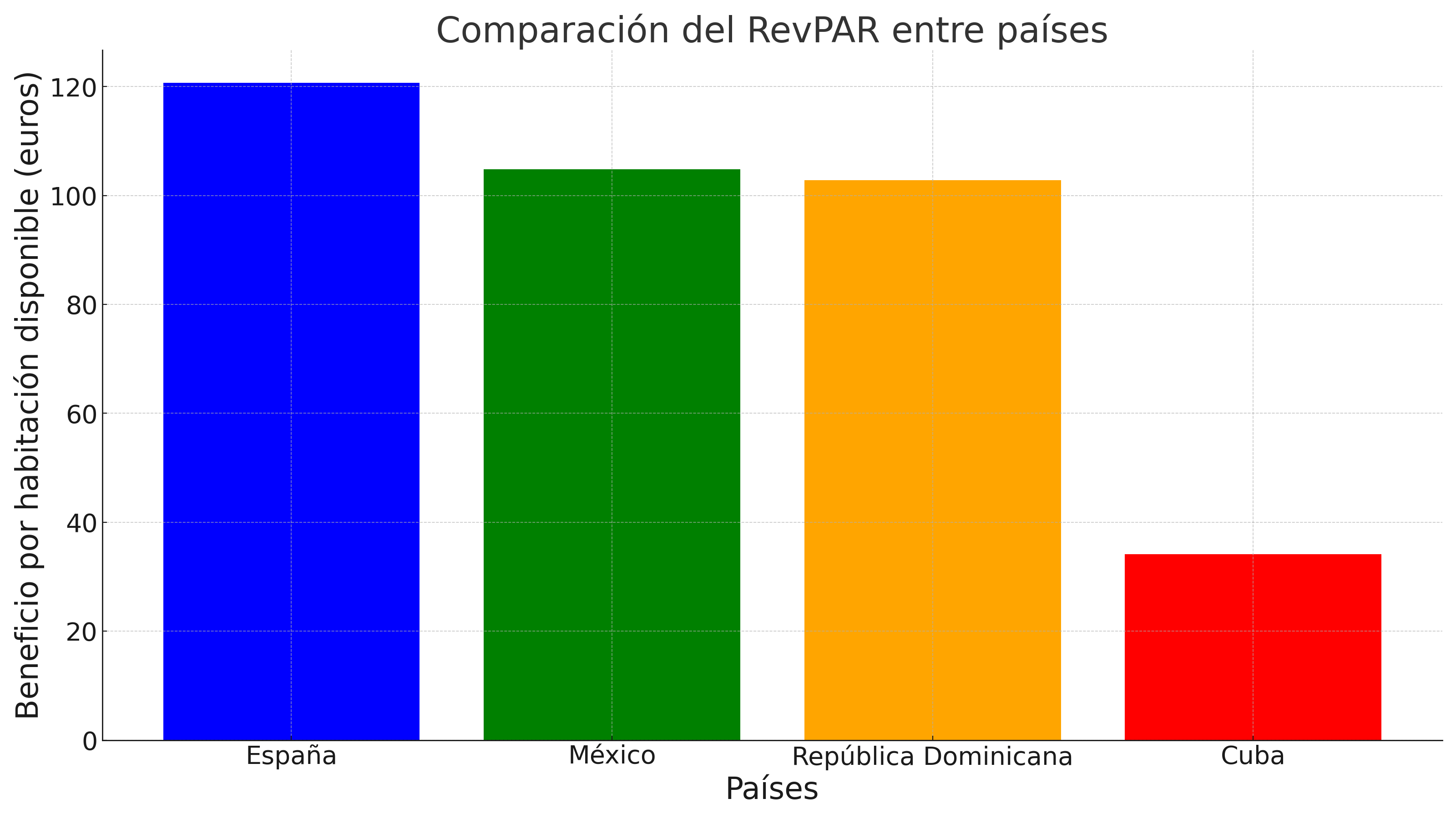 La tarifa media diaria fue de 83.4 euros, mientras que el beneficio por habitación disponible (revpar) alcanzó solo 34.1 euros, muy lejos de los 120.7 euros en España, 104.8 euros en México o 102.8 euros de República Dominicana.