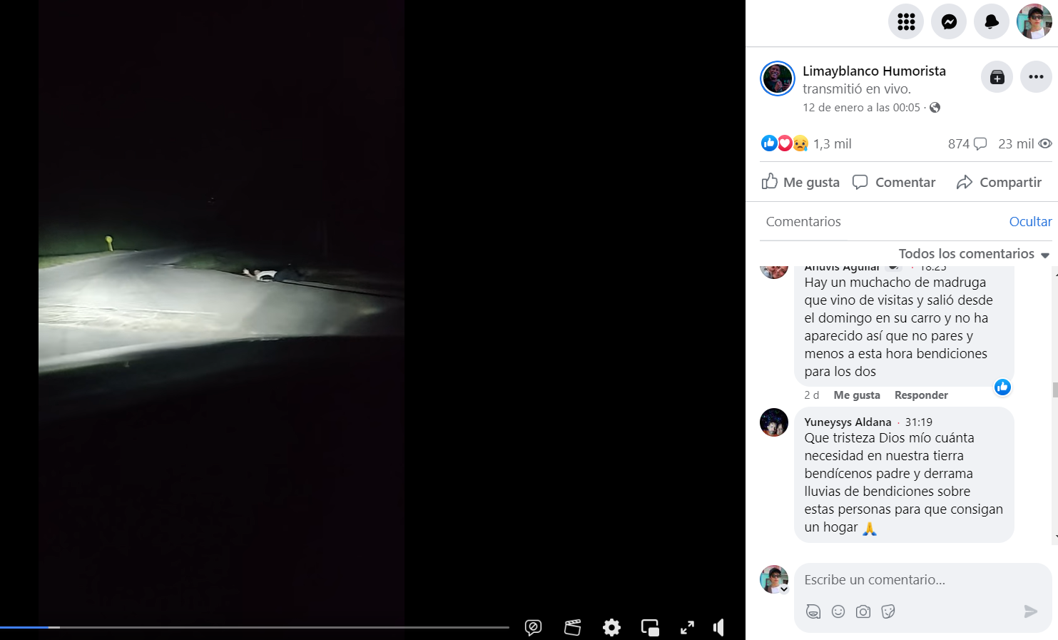 El viernes 12 enero, el humorista cubano Limay Blanco y su esposa Glenda compartieron un video en vivo que ha generado preocupación en la comunidad cubana. El corto, que comenzó siendo un viaje por carretera mientras el artista y su pareja escuchaban música, terminó siendo una narración de miedo.