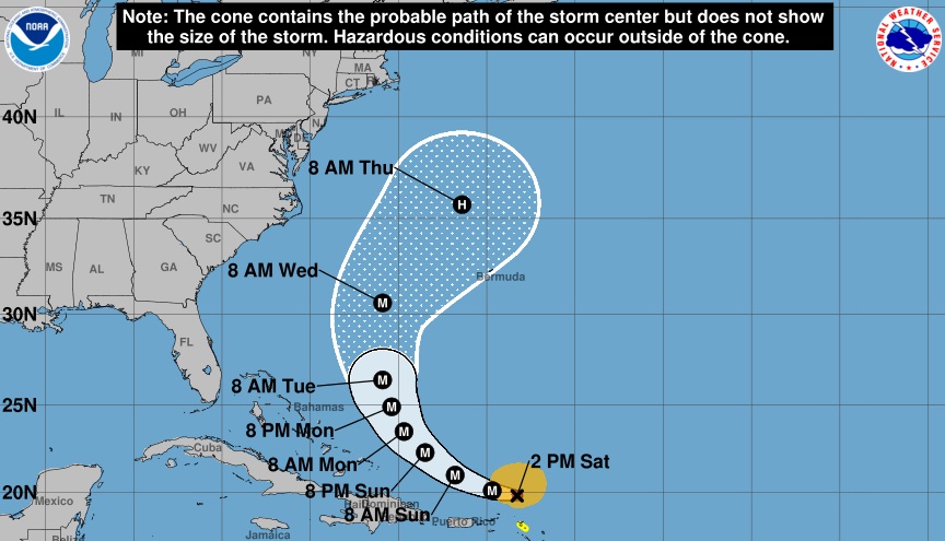 A las 11:20 a.m., hora local de Miami, el NHC declaró que el centro de la tormenta se encontraba a solo 170 kilómetros al norte de Anguila, mientras avanzaba a una velocidad de 28 km/h en dirección oeste, a 375 kilómetros de Puerto Rico.