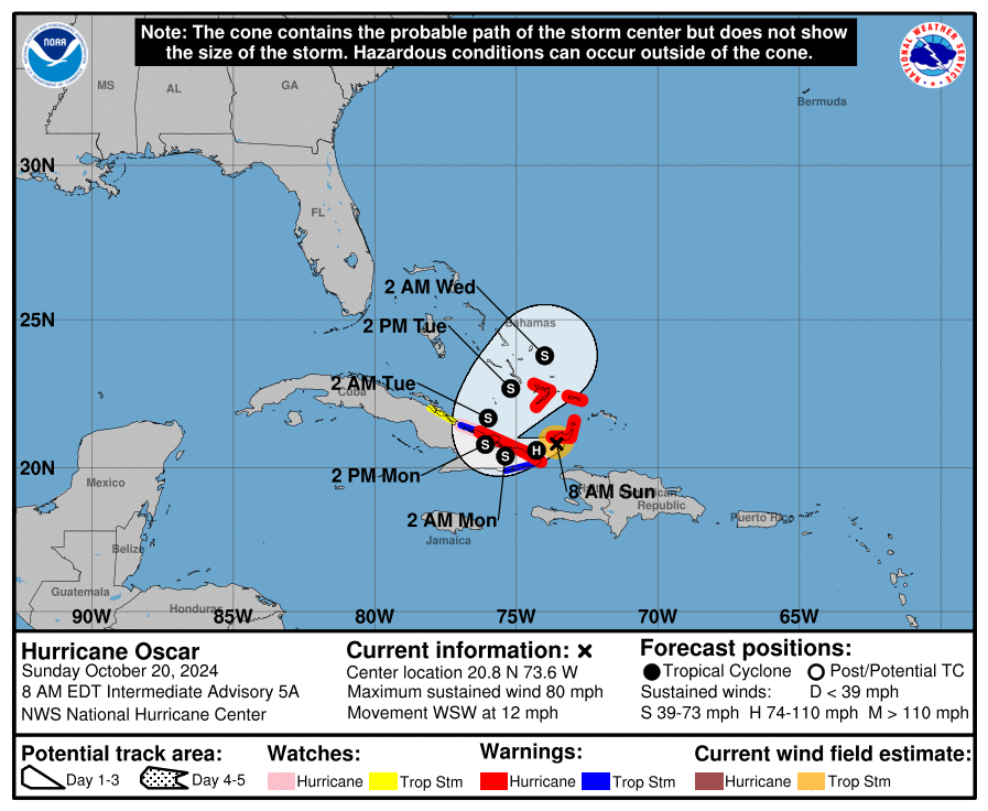 11am EDT Oct 20th Key Messages for #Hurricane #Oscar which is expected to make landfall along the northern coast of southeastern Cuba later this afternoon.