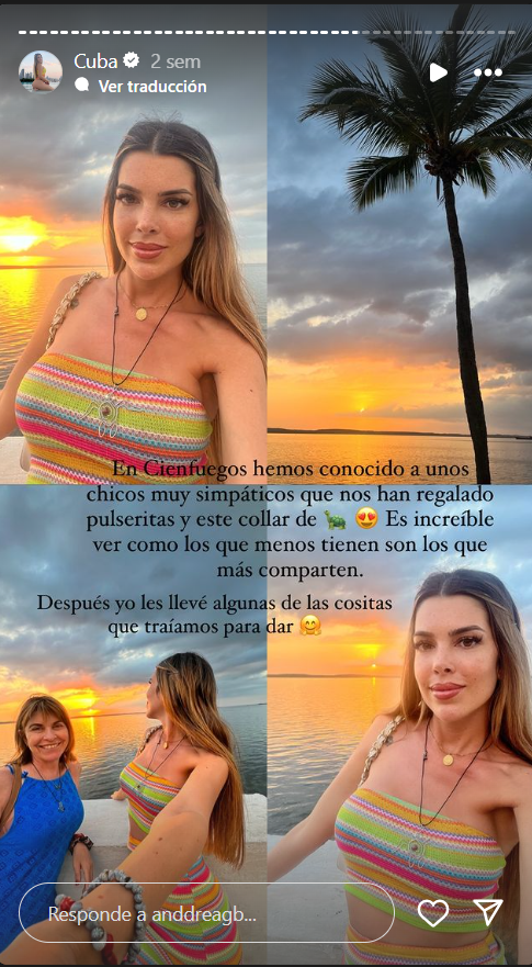 En una imagen compartida sobre las playas, Andrea destacó que no necesitaban ningún filtro, a lo que una usuaria de la red respondió: “Las playas no necesitan filtro, querida Andrea, pero la vida real que se vive en Cuba si necesita mucho filtro. Tristemente, el privilegio que tienen ustedes, los extranjeros no lo tiene el cubano”.