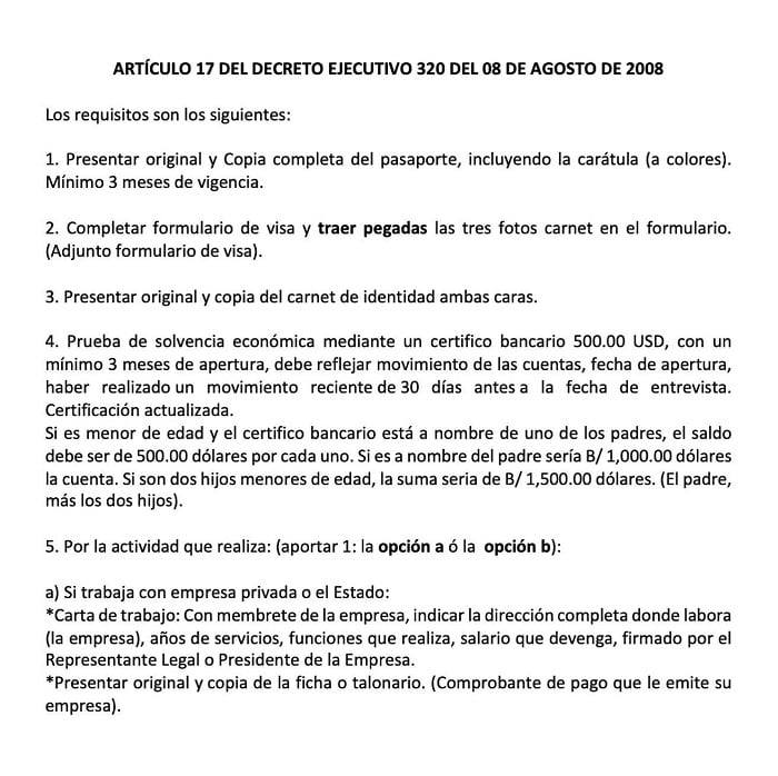 A los interesados también se les solicita una prueba de solvencia económica mediante un certificado bancario que refleje en la cuenta al menos 500 dólares con un mínimo de 3 meses de apertura.