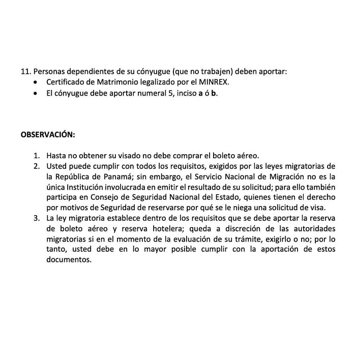 Las autoridades panameñas piden a los interesados que hasta que tengan el visado procedan a comprar el boleto aéreo y se recuerda que no se dará aclaraciones en caso de la negación del documento migratorio.
