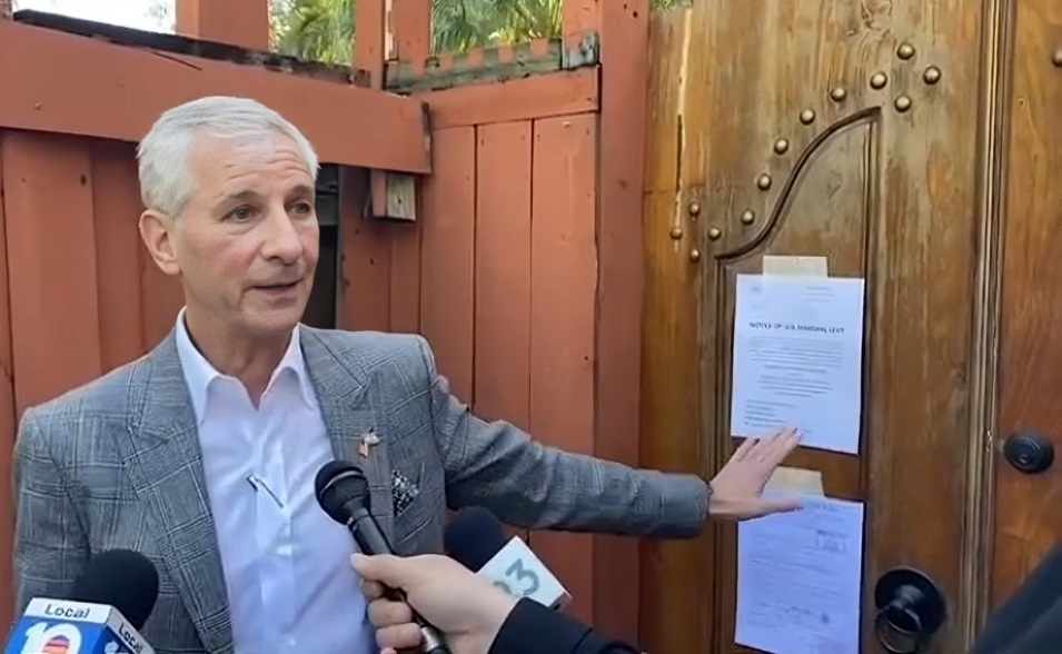 Agentes federales visitaron la residencia del comisionado de Miami, Joe Carollo, en Coconut Grove, donde pegaron un aviso en la puerta principal para dar por iniciado el proceso de confiscación de esta propiedad.