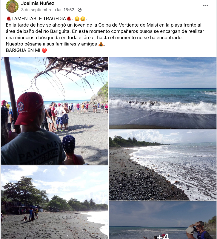 A través de una publicación en Facebook, se supo que el hecho ocurrió el pasado domingo en una playa que se encuentra en la localidad de Bariguita, y que el muchacho, del cual no trasciende su nombre aún, era originario de la Ceiba de Vertiente, en Maisí.