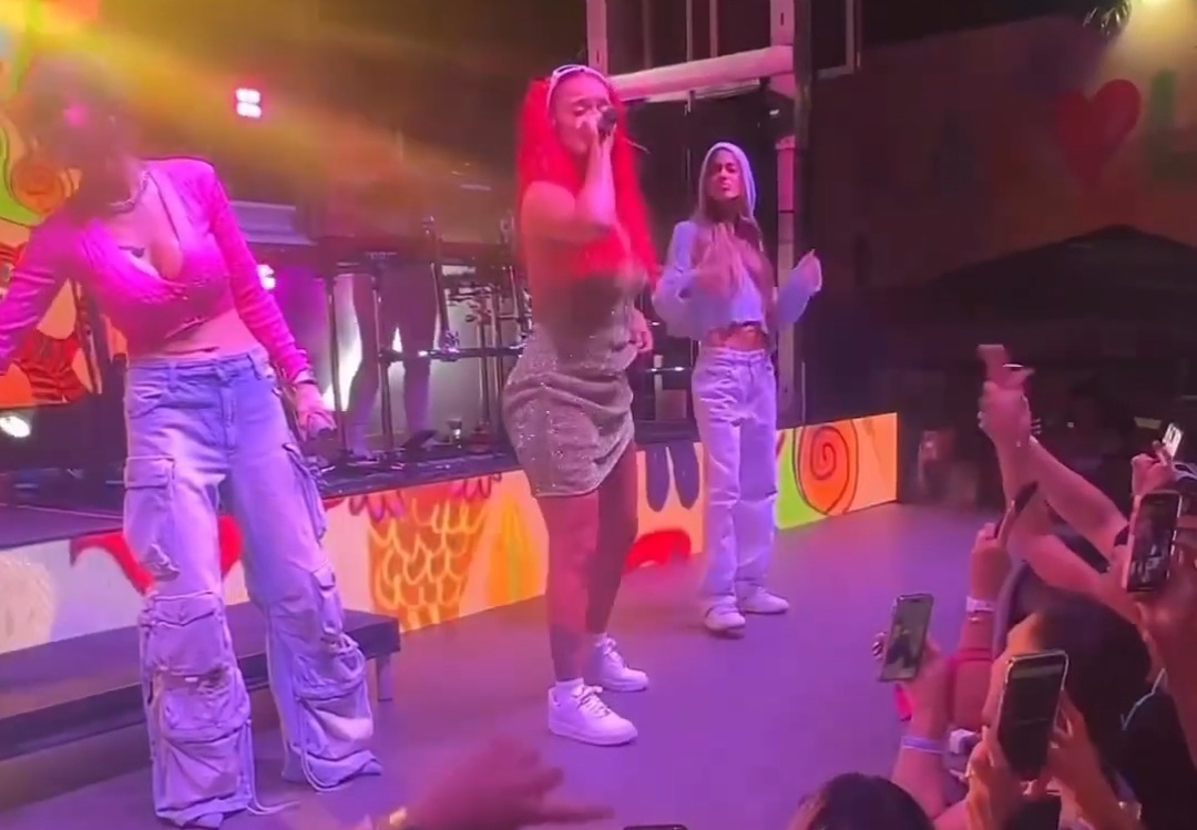 Según ha trascendido en redes sociales, la artista compartió escenario con colegas del género, como la dominicana Natti Natasha y la argentina Tini Stossel, en lo que parece ser un club de la Ciudad del Sol, donde las intérpretes bailaron y disfrutaron de su nuevo éxito.