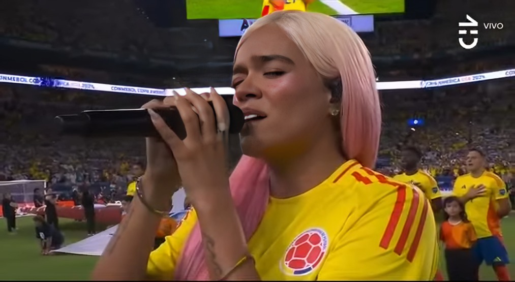 Karol G destacó como una de las figuras colombianas presentes en el Hard Rock Stadium, en Miami, Estados Unidos. La cantante antioqueña conmovió a los asistentes al interpretar el himno nacional durante la final de la Copa América, lo que arrancó lágrimas a muchos hinchas.