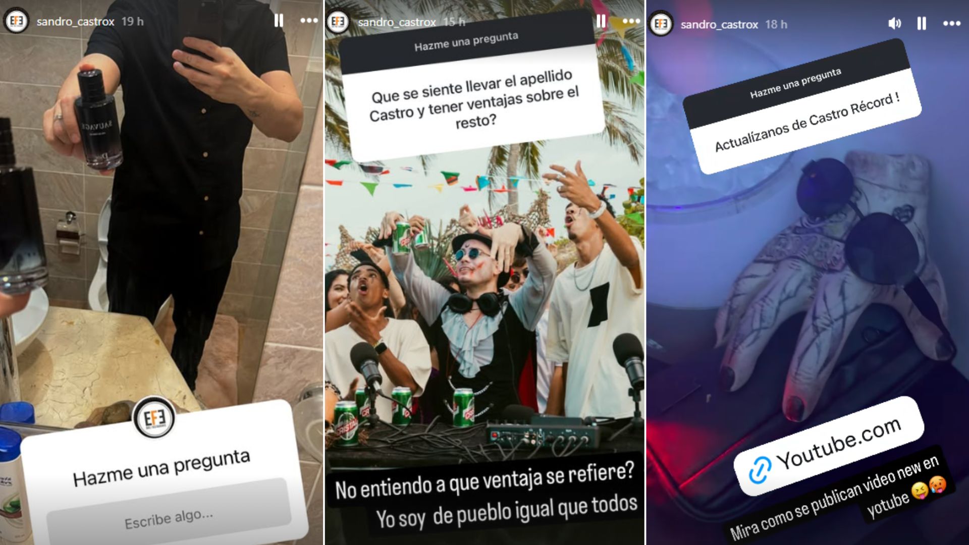 Durante la interacción, uno de los usuarios le preguntó: “¿Qué se siente llevar el apellido Castro y tener ventajas sobre el resto?”. A lo que Sandro respondió: “No entiendo a qué ventaja se refiere? Yo soy de pueblo igual que todos”.