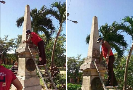 En redes sociales se compartieron fotografías donde se ve que el monumento ya no tiene la parte superior y está rodeado de ramas caídas. El paso de Laura por Cuba causó daños en más de 2.000 viviendas.