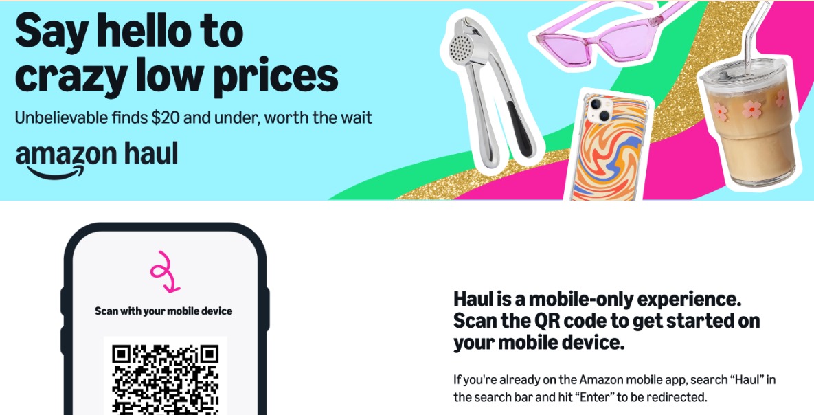 Amazon presentó en noviembre de 2024 su nueva división de tiendas en línea nombrada como Amazon Haul, que está enfocada en productos de bajo costo. Diseñada para competir con plataformas como chinas como Temu y Shein, busca captar consumidores sensibles al precio con artículos, principalmente por debajo de los 20 dólares. Actualmente, solo está disponible en Estados Unidos y en versión beta por medio de un apartado dentro de la aplicación principal de Amazon y en su portal web.