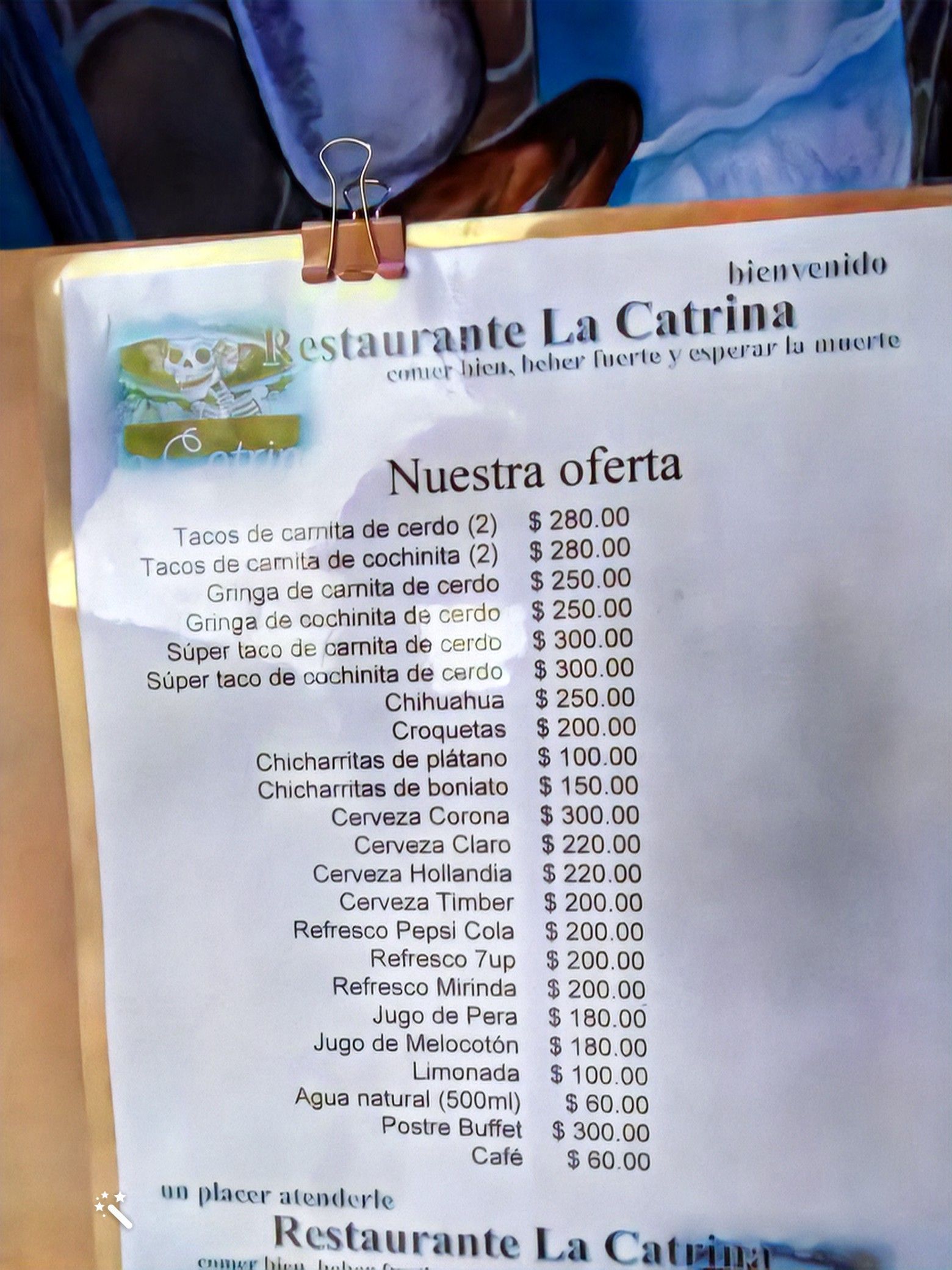 El pasado 29 de marzo, un ciudadano mexicano visitó un bar-restaurante nombrado La Catrina, donde se ofrece comida típica mexicana. En el menú sobresale una orden de dos “tacos de carnita” que cuesta 280 CUP y una cerveza Corona, hecha en México, a 300 CUP. Solo con ese pedido el presidente mexicano estaría consumiendo más de un tercio de su pensión si va a vivir en Cuba.