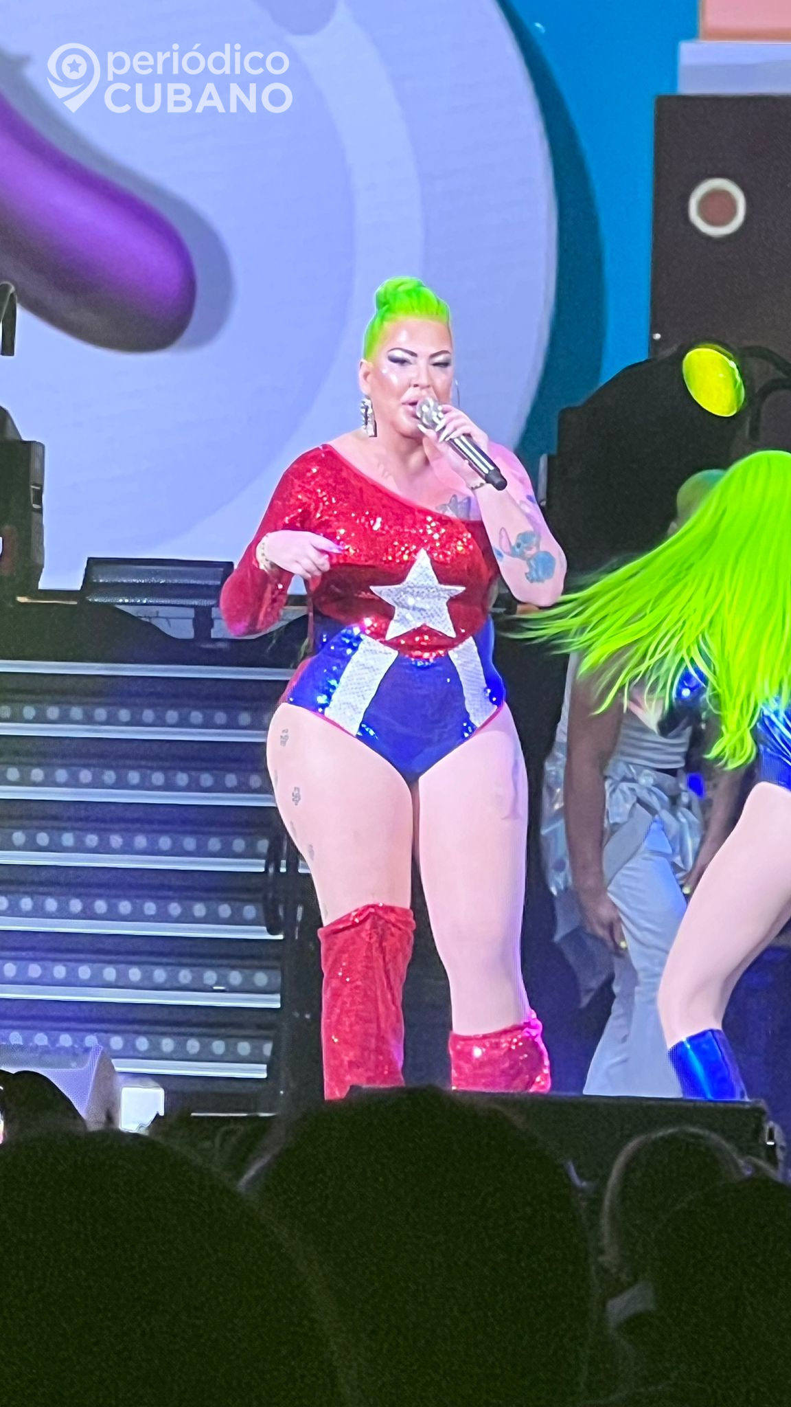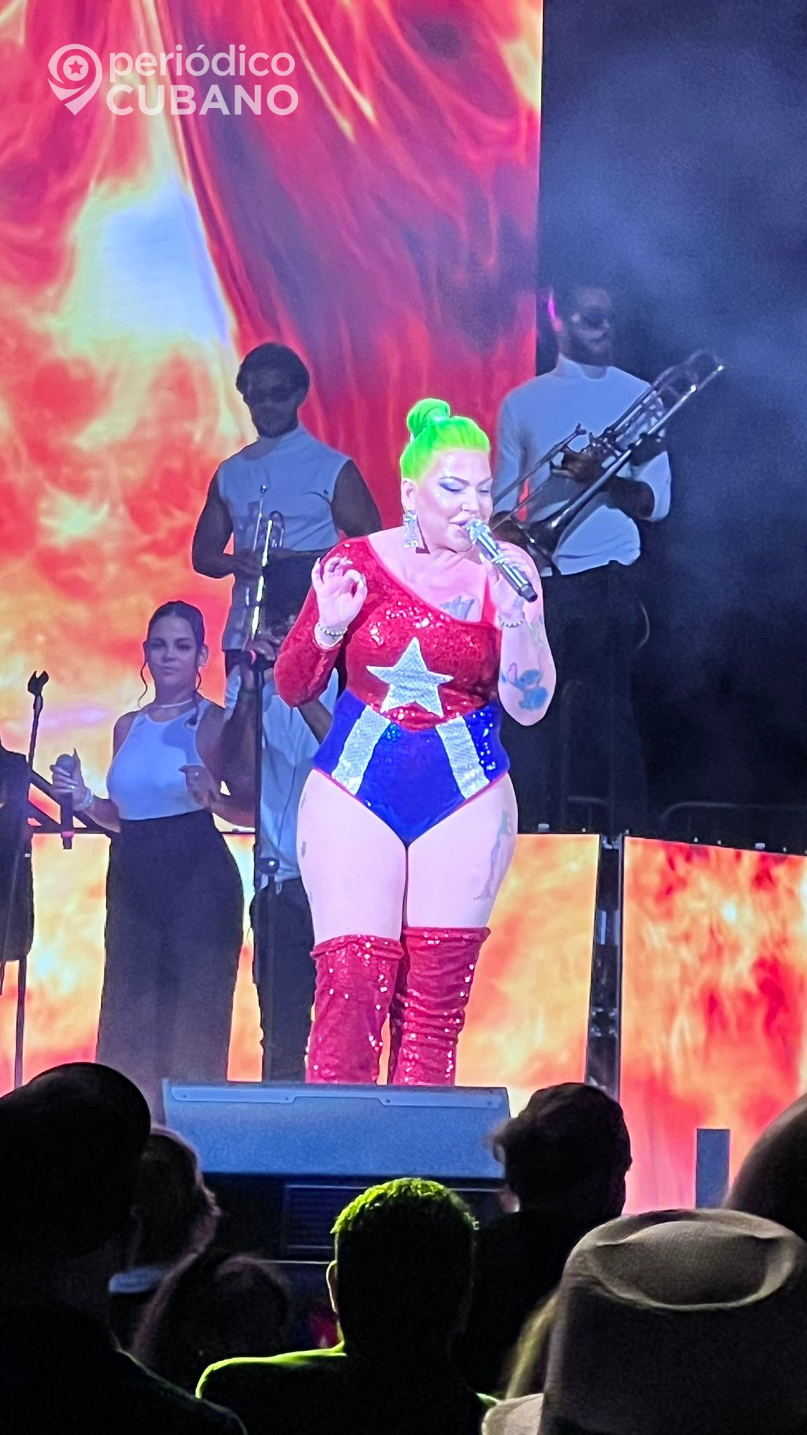 Además, La Diosa expresó su oposición a la dictadura comunista, luciendo un espectacular conjunto con los colores de la bandera cubana. “Abajo los opresores. Abajo los comunistas. Abajo la dictadura”, exclamó mientras el público respondía con aplausos y gritos de libertad para la Isla.