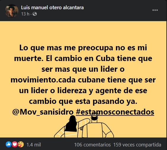 “Lo que más me preocupa no es mi muerte. El cambio en Cuba tiene que ser más que un líder o movimiento. Cada cubane tiene que ser un líder o lideresa y agente de ese cambio que está pasando ya”, afirmó el activista en Facebook.