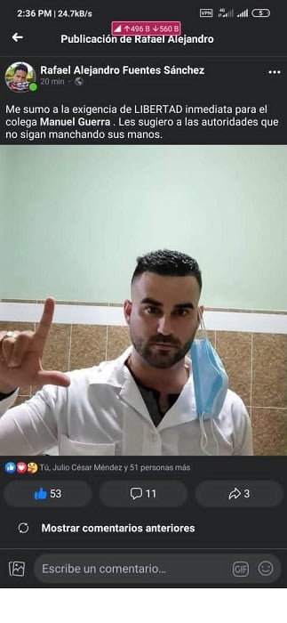 El médico Rafael Fuentes Sánchez también se sumó a la exigencia de libertad y pidió al régimen comunista que no siga manchando sus manos.