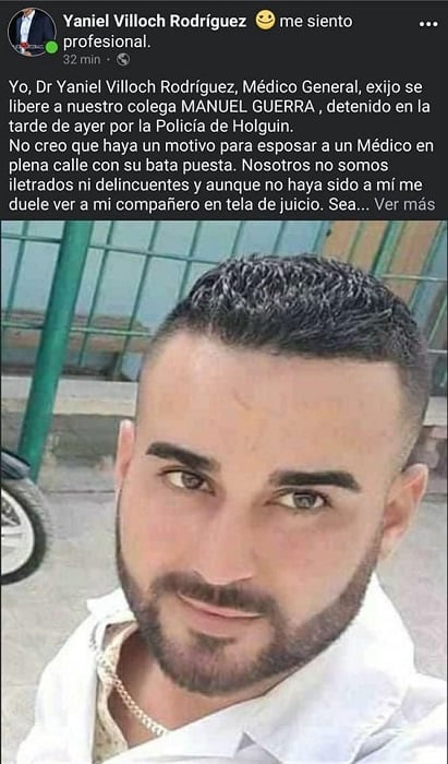 Médicos cubanos cerraron filas ante la detención arbitraria de su colega Manuel Guerra cuando ayer sábado se dirigía al poblado de Buenaventura, en la provincia de Holguín, donde trabaja como ginecólogo.