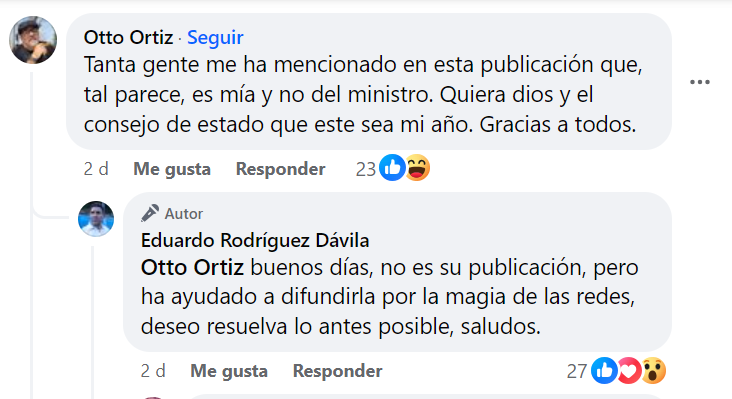 Al ver la publicación, muchos cubanos etiquetaron a Ortiz, quien terminó comentando que “tanta gente me ha mencionado en esta publicación que, tal parece, es mía y no del ministro. Quiera Dios y el Consejo de Estado que este sea mi año. Gracias a todos”.