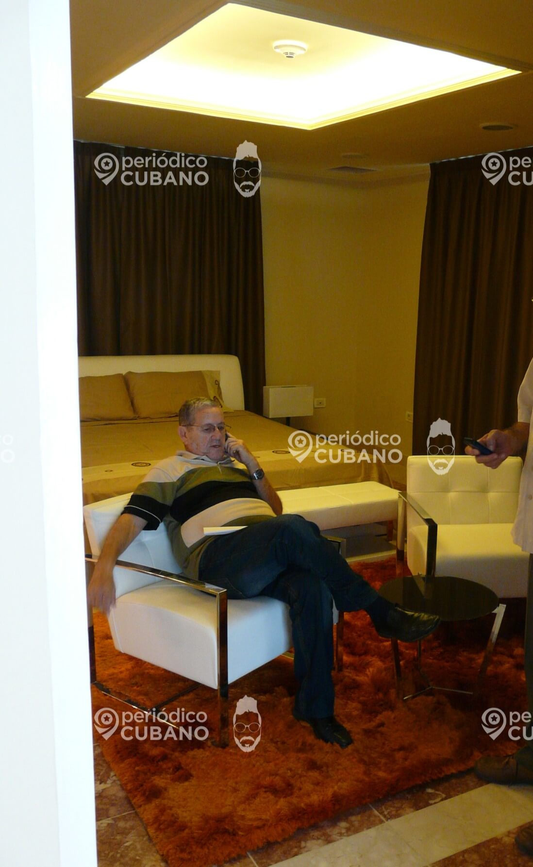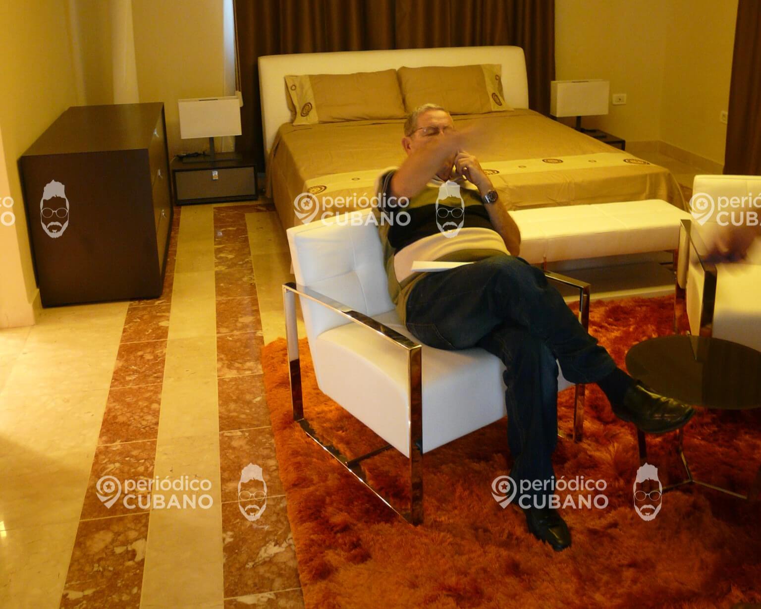 En una de las fotos exclusivas a las que tuvo acceso Periódico Cubano se ve a Maciques sentado en una habitación de Nave Pilar mientras supervisa las acciones de mantenimiento y remodelación.