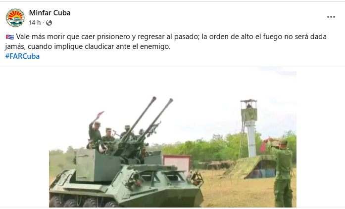 Ahora, más de una semana después de esos acontecimientos, el Minfar indica que “vale más morir que caer prisionero y regresar al pasado; la orden de alto el fuego no será dada jamás, cuando implique claudicar ante el enemigo”.