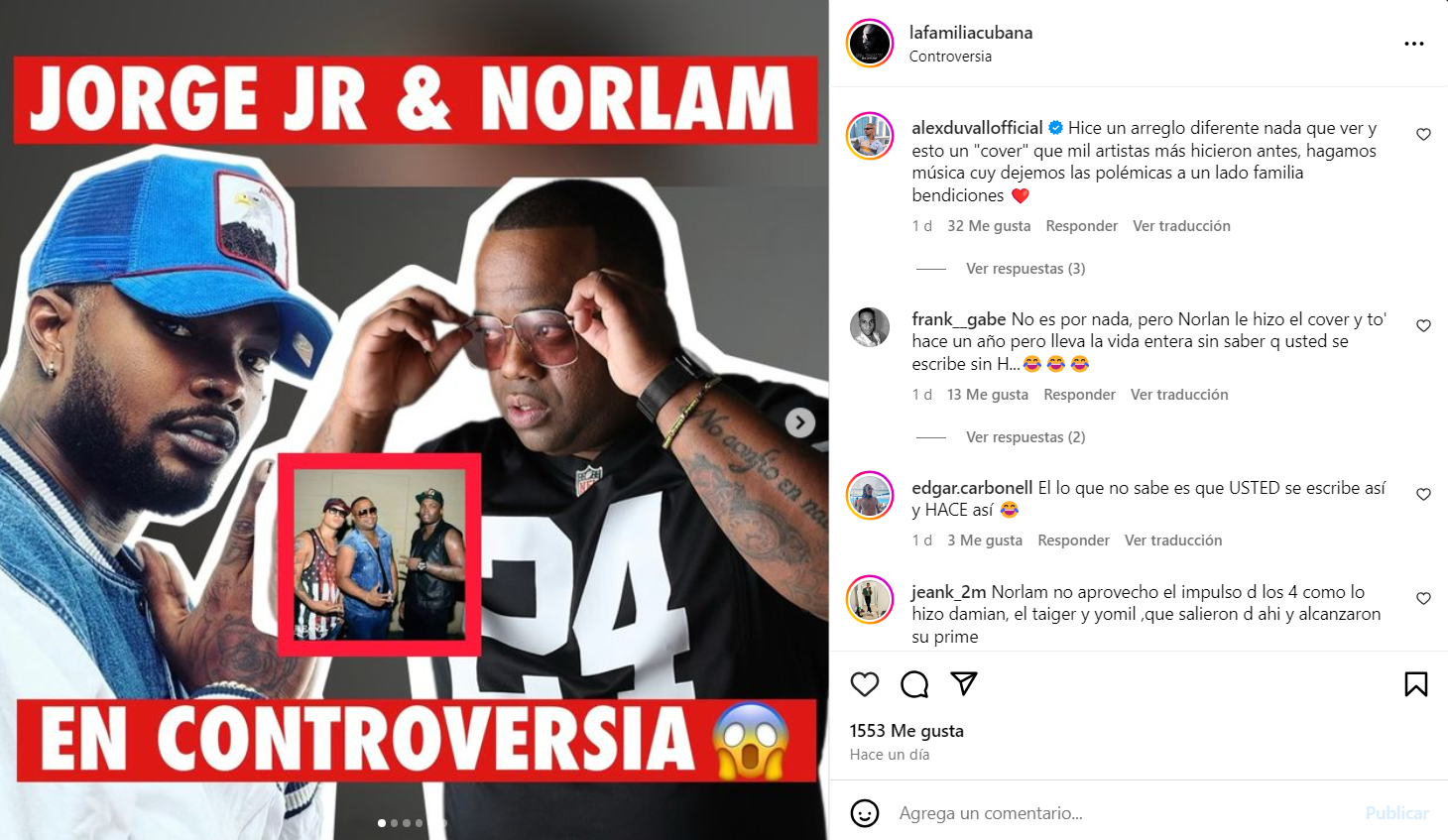 El conflicto estalló a raíz del lanzamiento de un nuevo sencillo en el que Jorge Junior, colabora con Alex Duvall. Se trata de un cover de la canción Usted no sabe, del cantautor brasileño Alexandre Pires, la cual ya había sido reinterpretada por Norlam en 2023, alcanzando 29 mil vistas en YouTube.